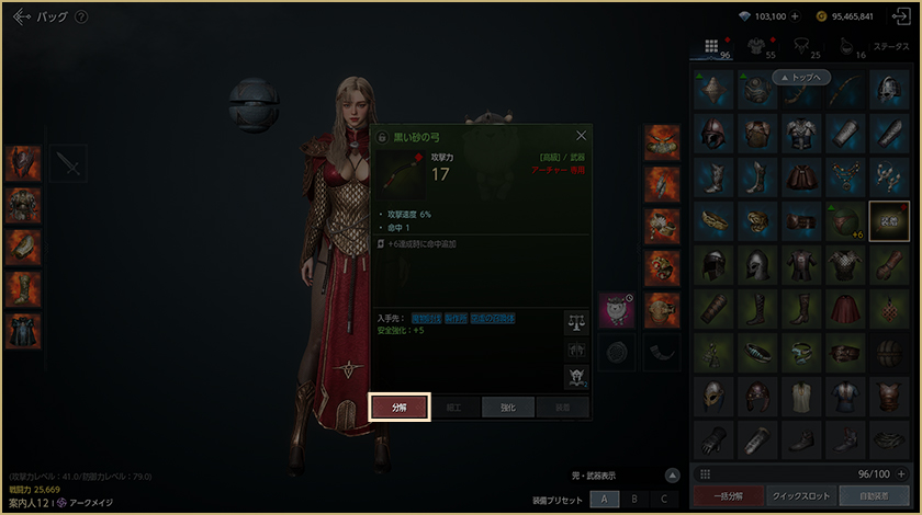 不要な装備は分解して、素材を獲得することができます。分解するとバッグの整理、素材の獲得もできて一石二鳥!