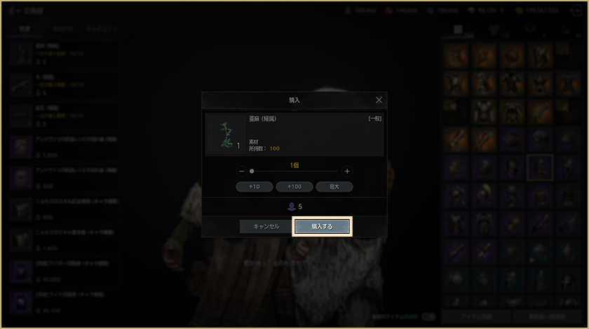 ・倉庫とバッグのスロットを拡張することで、保管数を最大150個まで増やせます。