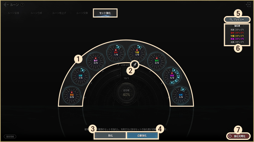 2.セット固定:1つのルーンセットを強化対象から外すことができます。