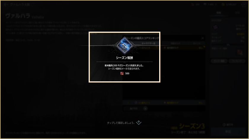 ランクは毎週月曜の決まった時間に集計され、達成したランクに応じて影の城塞専用の財貨「影のコイン」を報酬として獲得できます。