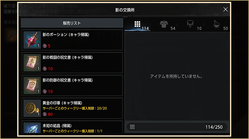 -影の交換所で影のコインを使ってアイテムを購入できます。