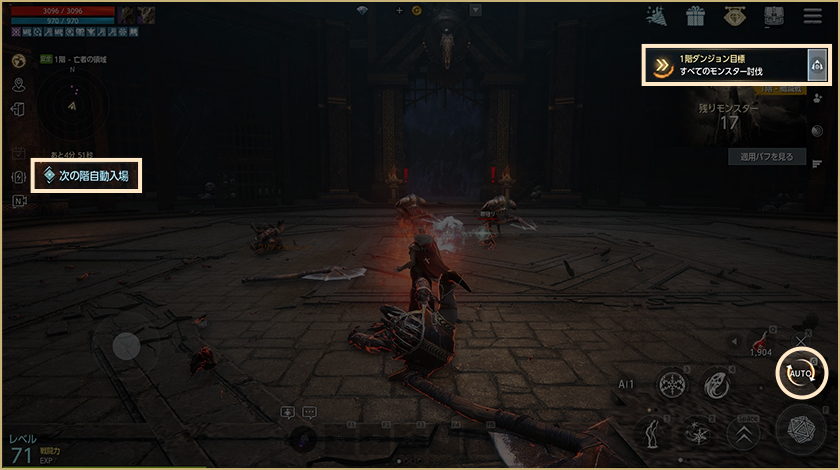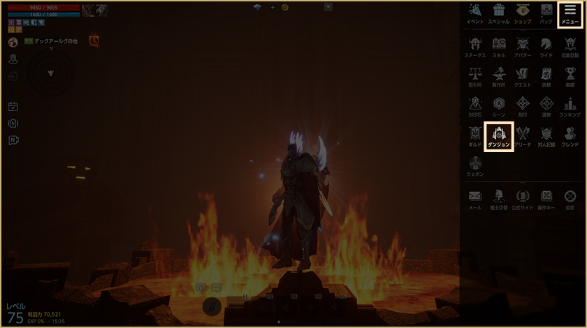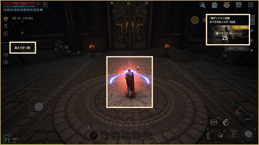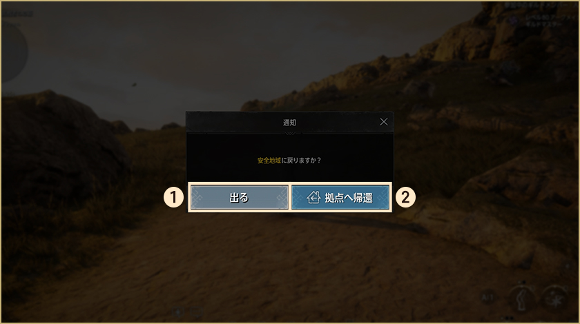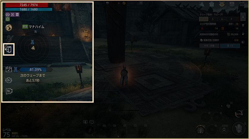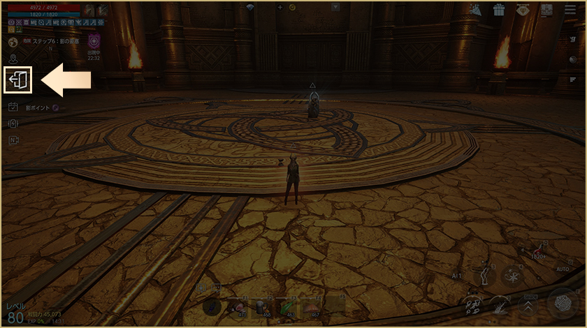 -メイン画面の左にある「出る」アイコンを押すとダンジョンから離脱でき、参加前にいたフィールドに移動します。