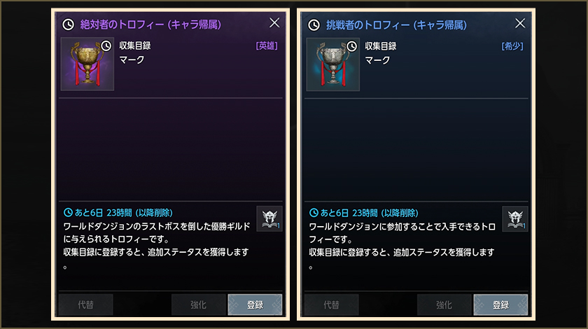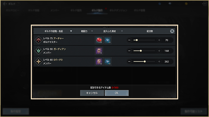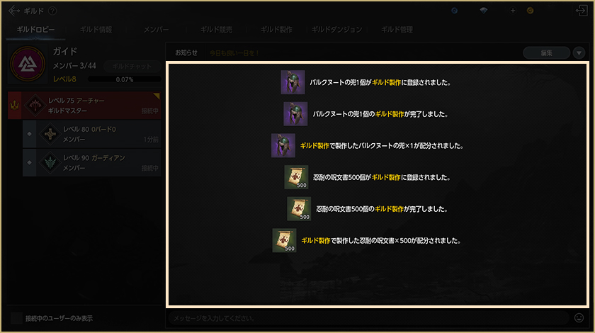 -ギルド単位の報酬は、攻撃隊に加入しているギルドメンバーのみを対象に分配されます。 (特定クラス以上のアイテム)