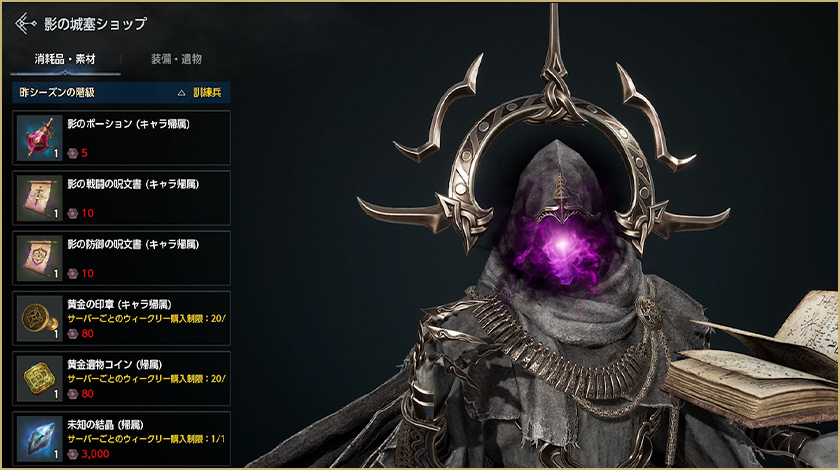 -影の城塞にはその中でしか使用できない「影の城塞移動石」と「影の城塞専用消耗品」があります。