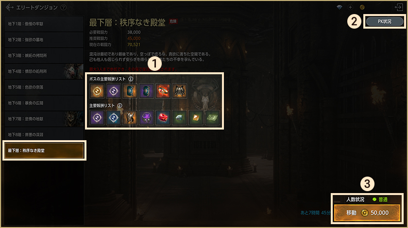 地下牢:最下層は全サーバー共通のワールドダンジョンです。サーバーを跨いで白熱の戦いを繰り広げましょう!