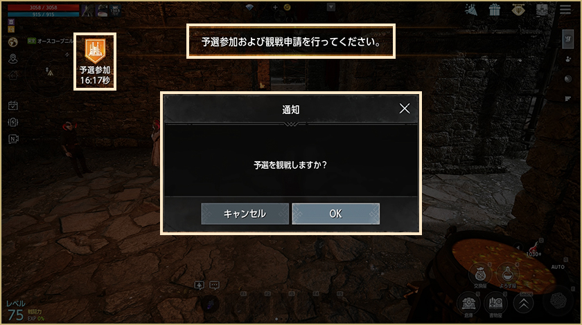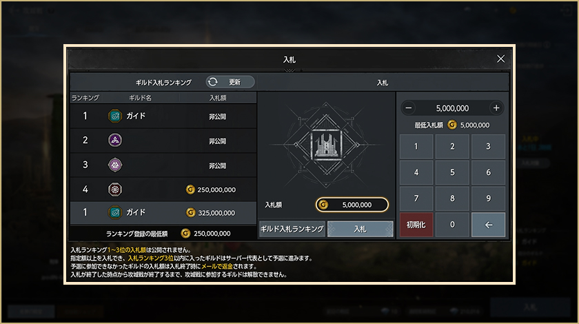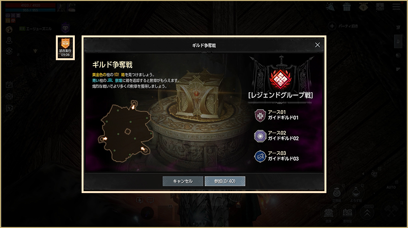 – マッチングが完了したギルドは試合開始前にギルド争奪戦ロビーまたはミニマップ右側にある参加アイコンから入場できます。