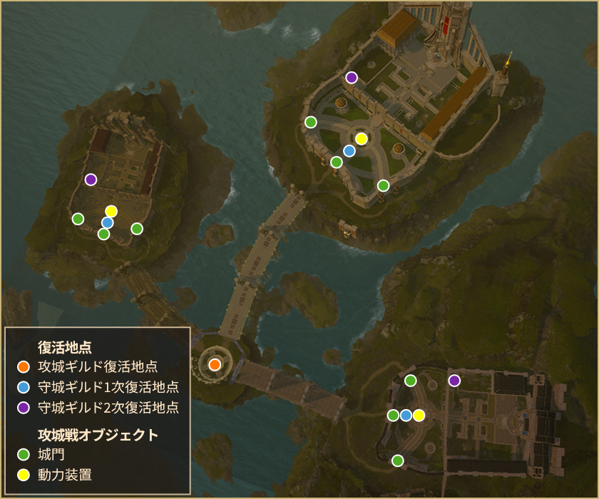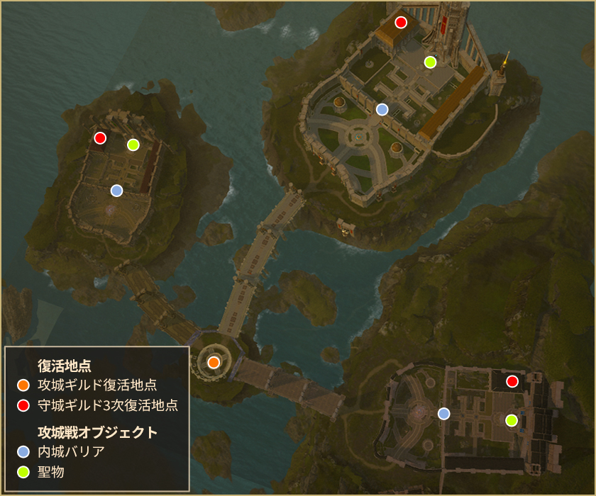– ギルド毎に異なるスタート位置で開始・復活します。