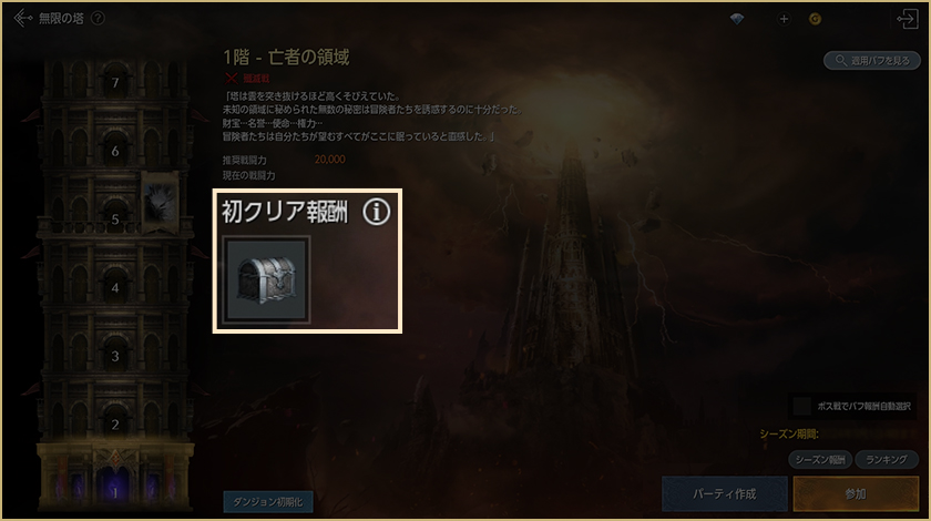 ◇影の城塞ランク及び報酬