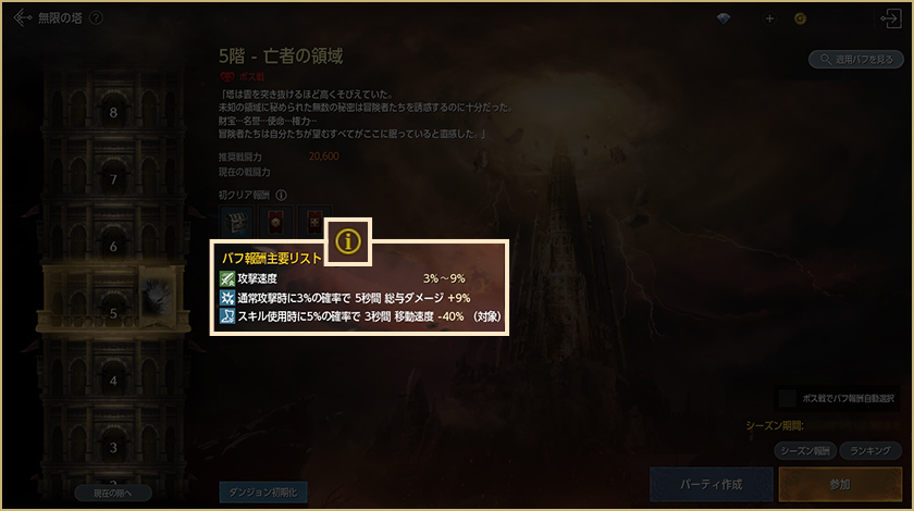 – 尖塔の支配者ボスモンスターにラストアタックしたプレイヤーと、プレイヤーが属するギルドメンバーに5分間のバフが付与されます。