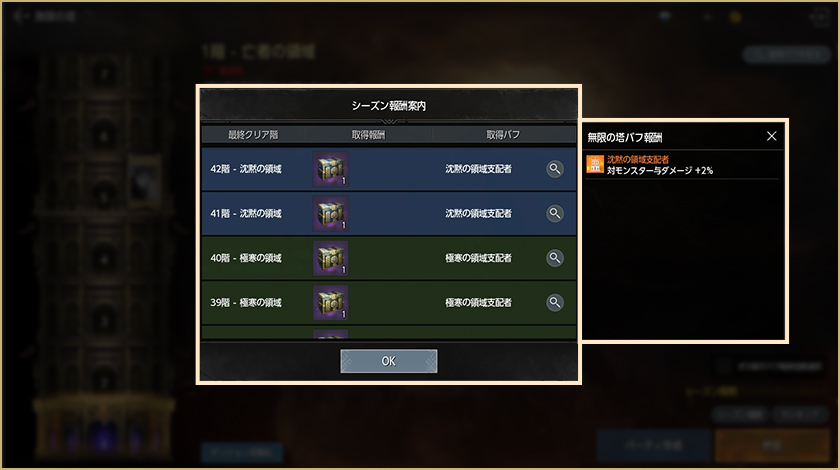 iアイコンを選択すると、グループ別の詳細な主要報酬リストを確認することができます。