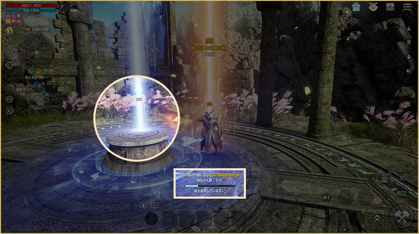 – 箱の献納中に祭壇周辺に味方ギルドメンバーがいる場合、献納速度が増加します。(最大5人)