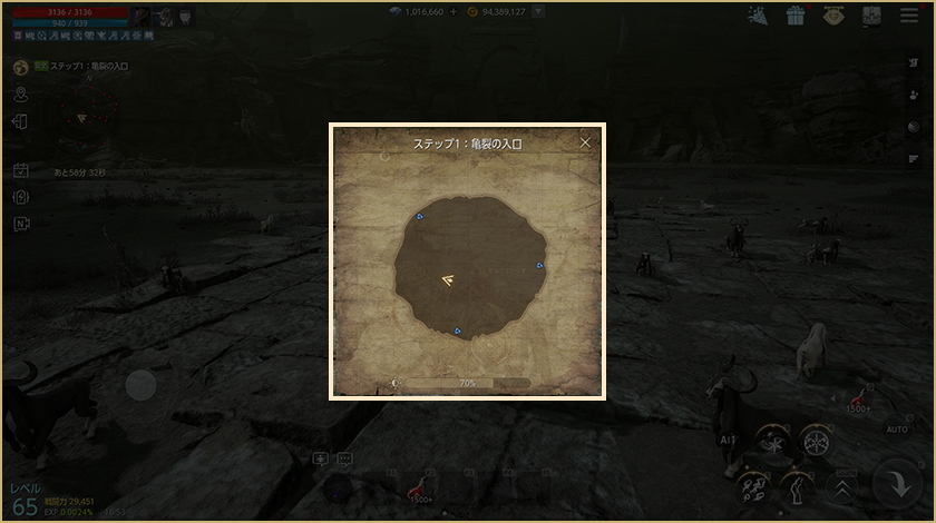 ・エリートダンジョンでミニマップをクリックすると、画面中央にロードマップが表示されます。